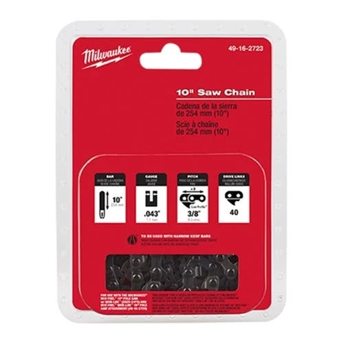 The 10″ Saw Chain is to be used with our M18 FUEL 10″ Pole Saw w/ QUIK-LOK (2825-21PS) and M18 FUEL QUIK-LOK 10″ Pole Saw Attachment (49-16-2720). The replacement saw chain design gives you fast cuts with low vibration and minimum kickback.