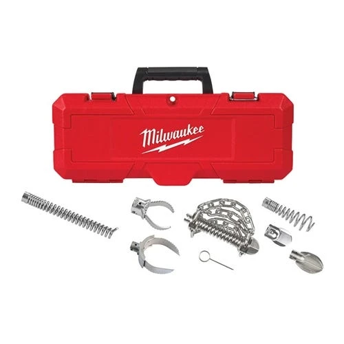 The 2″-4″ Head Attachment Kit for 7/8″ Sectional Cable includes all the tools you need to clear the most common clogs in medium drain lines. The durable steel construction and RUST GUARD plating reduce corrosion; giving you longer-lasting accessory heads. This pipe clearing tool kit includes 7 cable head attachments; a pin key; and a carrying case.