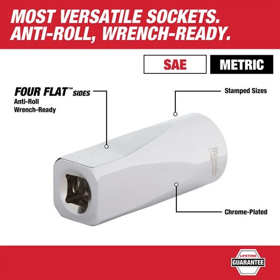 Versatile Sockets that are Anti-Roll and Wrench-Ready. Its innovative FOUR FLAT Sides feature an anti-roll and