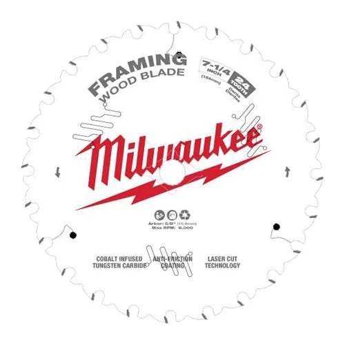 Milwaukee Circular Saw Blades provide longer life; increased assuracy and cooler cuts in wood cutting applications. The Blades are designed utilizing application-specific Cobalt Infused Tungsten Carbide to extend cutting life and maintain tip sharpness.
