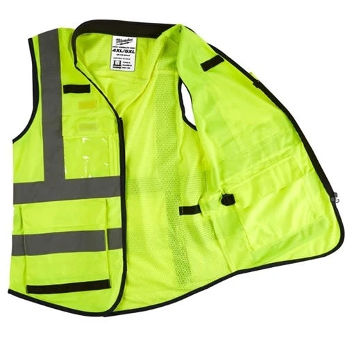 The ANSI Type R Class 2 High Visibility Performance Safety Vest is designed to carry more. The high visibility safety vest has 15 pockets including a clear ID holder; rear tablet pocket; and 3 internal pockets; providing you with added storage. The safety vest features a quick internal size adjustment providing you with a better fit as well as a durable pass-through slit for fall protection gear. The internal size adjustment allows you to wear the same vest in the summer over a t-shirt or in the winter over a jacket.