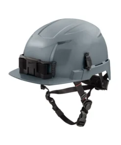 The MILWAUKEE Type 2, Class E Gray Front Brim Safety Helmet delivers better protection and more comfort. The safety helmet offers protection from top and side impacts. These construction safety helmets are BOLT compatible with four BOLT accessory slots and two universal accessory slots that easily integrate additional personal protection equipment and accessories to adapt to any jobsite. The helmet includes a BOLT Headlamp Mount that works with most headlamps for easy, secure attachment, and a BOLT Marker Clip allows for easy access to pens and markers. This Milwaukee helmet has a comfortable padded suspension that includes an adjustable swinging ratchet for better comfort. The climbing style helmet also has a comfortably fitting five adjustable buckle chin strap for better security. An antimicrobial sweatband and helmet liner prevent odor and bacteria build up and are removable and machine washable. These safety helmets are ANSI type 2 and customizable by adding a logo.