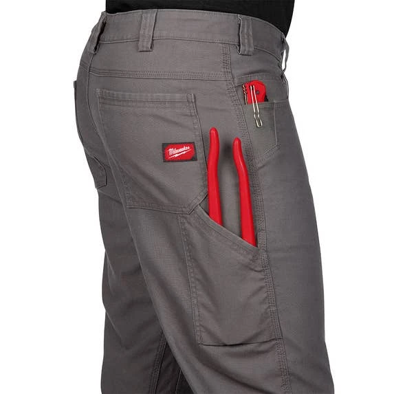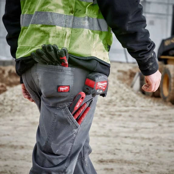 Milwaukee’s Heavy Duty Flex Work Pants are made from a lightweight, tear-and-abrasion-resistant fabric that provides broken-in comfort right off the shelf. Designed with a FREEFLEX crotch gusset and built-in fabric stretch, these gray work pants allow you to move unrestricted without stiffness. The MILWAUKEE Heavy Duty Flex Work Pants are built to outlast the job with purposeful details that professional tradesmen demand.