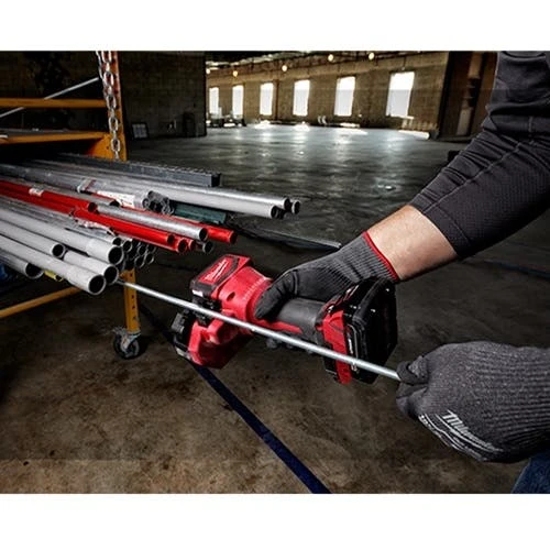 Our M18 Brushless Threaded Rod Cutter is Milwaukee’s dedicated solution for cutting the most common threaded rod sizes on the job site; including coarse 1/4; 3/8″ and 1/2″ mild steel to 1/4″ and 3/8″ stainless steel. The cordless threaded rod cutter is powered by a brushless motor and delivers 400+ cuts while powered by an M18 REDLITHIUM 2.0Ah Battery.