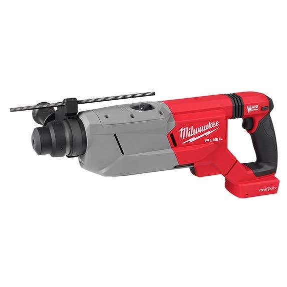 MILWAUKEE® M18 FUEL™ 1-1/4” SDS Plus D-Handle Rotary Hammer w/ ONE-KEY™ delivers on the drill speeds normally associated with SDS Max rotary hammers. The hammer drills Faster ¾” Holes and is Lighter Versus SDS Max rotary hammers, includes AUTOSTOP™ Control for Enhanced Safety, and can drill up to (25) ¾” x 4” Holes per Charge when paired with MILWAUKEE® M18™ REDLITHIUM™ HIGH OUTPUT™ XC6.0 Battery. The in-line D-Handle design allows access in tight spaces and provides superior balance and ergonomics for downward drilling. POWERSTATE™ Brushless Motor delivers 3.65 ft-lbs of impact energy, 810 RPM, and 4,650 BPM, providing the speed and power for the most demanding applications. This hammer provides maximum control and enhanced safety with the AUTOSTOP™ Kickback Control, preventing over-rotation if the tool binds up while drilling in concrete with rebar or hard aggregate. This tool is compatible with MILWAUKEE® M18 FUEL™ HAMMERVAC™ 1-1/4” Dedicated Dust Extractor providing on-board OSHA Table One compliance. The AVS Anti-Vibration System reduces vibration for maximum comfort. The cordless rotary hammer is compatible with ONE-KEY™ to track the tool’s location and manage inventory. The REDLINK PLUS™ intelligence tool technology ensures maximum rotary hammer performance and protects it from overload, overheating, and over-discharge. The M18™ REDLITHIUM™ HIGH OUTPUT™ XC6.0 Battery delivers 50% more power while running 50% cooler than the M18™ REDLITHIUM™ XC batteries (not included).