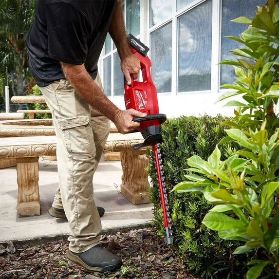 The MILWAUKEE M18 FUEL 18″ Hedge Trimmer has the power to cut 3/4″ branches, cuts up to 30% faster, and provides up to