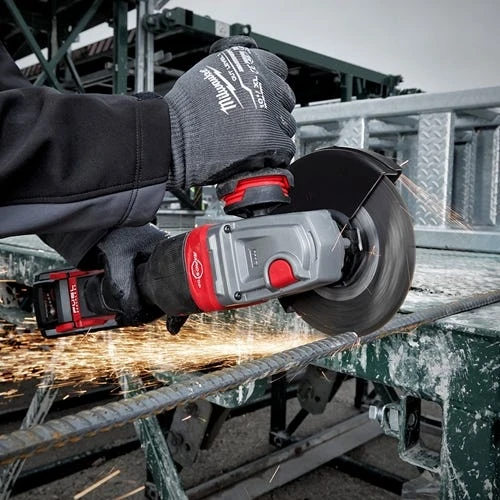 The M18 FUEL 4-1/2” – 6” Braking Grinder; Paddle Switch; No-Lock is Milwaukee’s highest performing small angle grinder. It generates the power of a 13A corded grinder; brakes all accessories under 3 seconds; and has 6” grinding capacity.