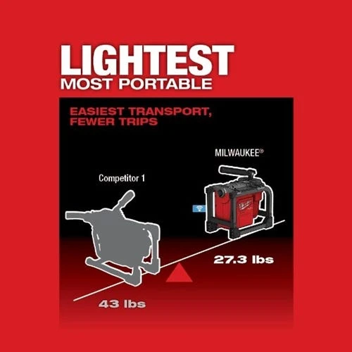 The new M18 FUEL Sectional Machine for 5/8” & 7/8” Cable delivers the power to clear heavy roots up to 150 ft out; providing over 50% more power than corded even at its maximum capacity. As the lightest weight and most compact machine in its class; this sectional machine can seamlessly transition between outdoor use and the tightest indoor applications. Whether the clog is only 15’ down the line or 150’ out; users can be confident they have the power they need to get the job done. This machine’s power exceeds the most popular corded options on the market and remains consistent throughout the job; allowing users to maintain power when they hit clogs rather than experiencing heavy bog-down. Additionally; most sectionals for 5/8” and 7/8” cable available today are only rated to clear up to 4” lines; this new M18 FUEL Sectional Machine is capable of clearing up to 6” lines. In addition; the elimination of cords means users won’t have to search for outlets or extension cords and enhances safety due to the reduction of trip hazards or cords near standing water.
