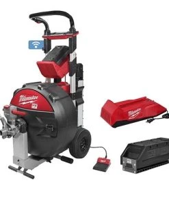 The Milwaukee MX Fuel Sewer Drum Machine with Powertredz simplifies sewer calls by providing Powertredz Lift Assist technology and the power to clear roots at 200 ft out while containing the mess with a fully closed drum. Powertredz Lift Assist technology enables one-person transportation of the machine up and down stairs as well as in and out of a service van.