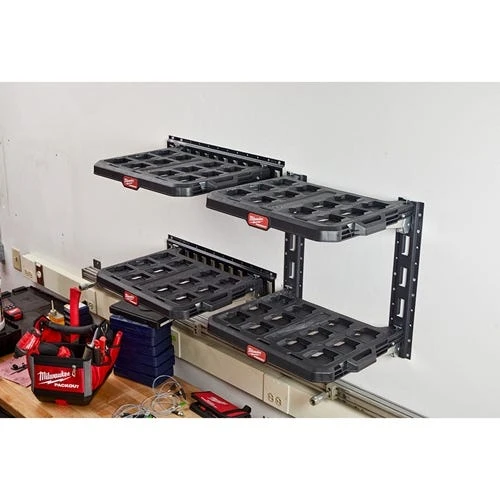 The Milwaukee PACKOUT Racking Shelf provides versatile mounting options and attaches to E-Track to place the Racking Shelf in any location or to any surface E-Track can be mounted. The PACKOUT Racking Shelf provides a 50lbs weight capacity with a metal reinforced frame and impact resistant body. The PACKOUT Racking Shelf also has integrated tie-down points for secure attachment during transportation. The PACKOUT Modular Storage allows for customized storage systems for easy transportation and organization of tools and accessories. The PACKOUT Modular Storage System is the industry’s most versatile and durable storage system.