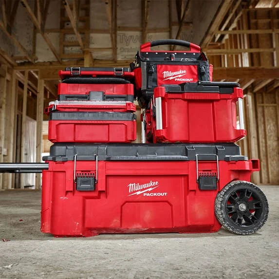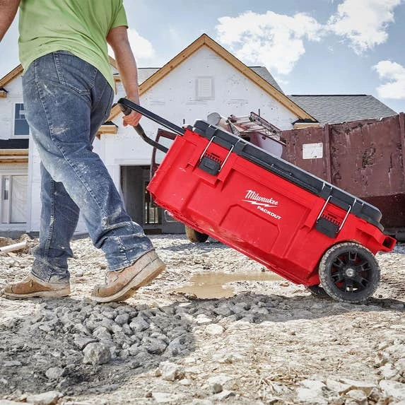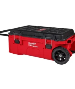 The MILWAUKEE PACKOUT Rolling Tool Chest allows users to bring two PACKOUT stacks onto the site with a Dual Stack Top and a 250lb weight capacity. The tool chest is constructed with impact-resistant polymers and water and debris protection to withstand harsh jobsite conditions. An industrial-grade extension handle and 9″ all terrain wheels ensure this tool chest can be rolled anywhere on the jobsite. With a 35 gallon capacity, and an interior organization tray, this tool chest keeps users’ equipment organized to fit their needs.