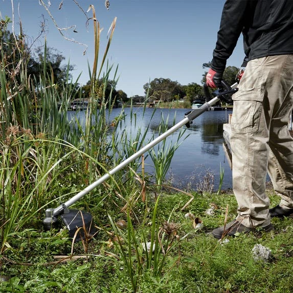 The Milwaukee M18 FUEL QUIK-LOK Brush Cutter Attachment is powered by the M18 FUEL Power Head w/ QUIK-LOK and is