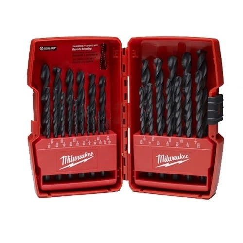 Milwaukee Thunderbolt Black Oxide Jobber length drill bits are designed for extreme durability and long life. The Thunderbolt web features a thicker core than a standard drill bit; which provides ultimate strength and protects against side-load breakage. Excellent for drilling on curved surfaces; requires less effort to drill and is highly recommended for use with portable drills. The 3-Flat Secure-Grip shank won’t slip in the drill chuck. Reduced shank diameter for use in 3/8 chucks. 29pc Thunderbolt Black Oxide Drill Bit Set comes with: 1/16″ through 1/2″ by 64ths
