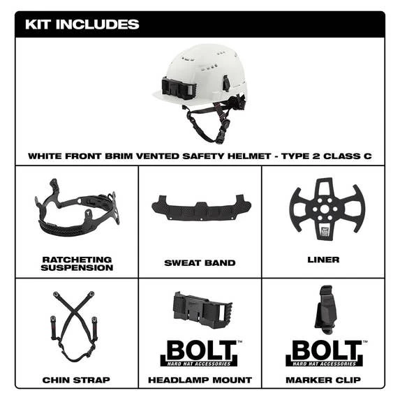 White Front Brim Vented Type 2 Class C Safety Helmet w/ BOLT 48-73-1320