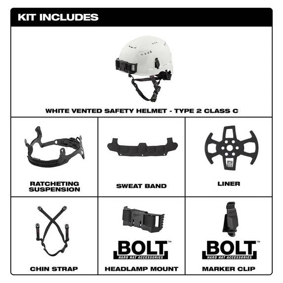 White Vented Type 2 Class C Safety Helmet w/ BOLT 48-73-1300